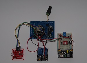 My test hardware consist of the NodeMCU an ELECHOUSE NFC Module V3, a DC/DC converter, a breadboard with a RGB LED WS2811 and a 2way relay card. The DC/DC converter on the breadboard brings the 12 V from the AC/DC wall outlet to 5V for the NodeMCU. The relays are used to open / or close my door when a valid card is swiped. The RGB Led WS2811 is just perfect for the NodeMCU/ESP8266 because of the limited available GPIO's. You can control a lot of WS2811 on just one GPIO. So if you are running out of GPIOs but you have the need of displaying different states, head for the WS2811.