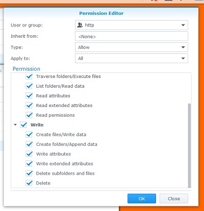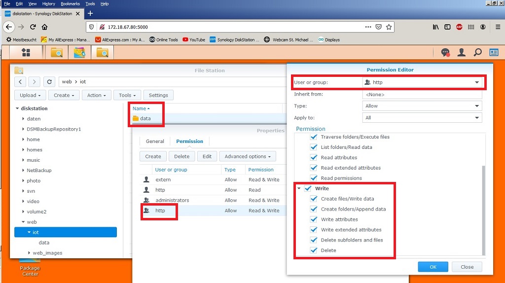 Du wählst das Verzeichnis data aus und setzt unter Permissions für die Usergruppe(!) http die Berechtigung Read & Write