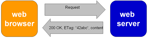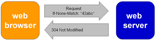 If you request this page again, the web browser will add the former received value from the ETag to a header field named "If-None-Match". Based on the value the webserver can decide, that the web browser has a valid version of this file and therefore just notifies the browser that the file wasn't modified and it is save to to use the cached file. Even there is some TCP/IP traffic it is much less than transmitting the same file over and over again: