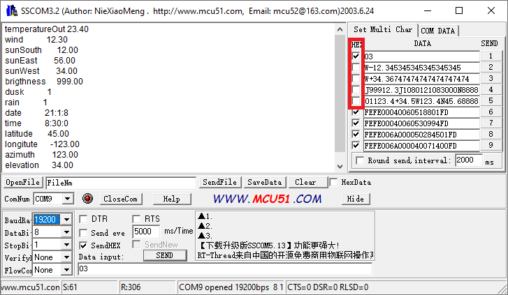 myserial.begin(19200); // the Elsner sensor transmits at 19200 Baud