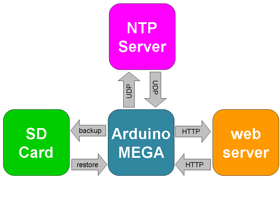 Let's assume an Arduino with a webclient should send data periodically to an external webserver. If the webserver is not responding the Arduino should backup the data to a SD Card. The Arduino will transmit the data later, when the webserver is available again. As we want to store data for later usage we need a timestamp. In this example I'm fetching time from a NTP server. Timekeeping could also be done with an I2C RTC DS3231 module. In other words - we need a valid timestamp if the transmission fails.