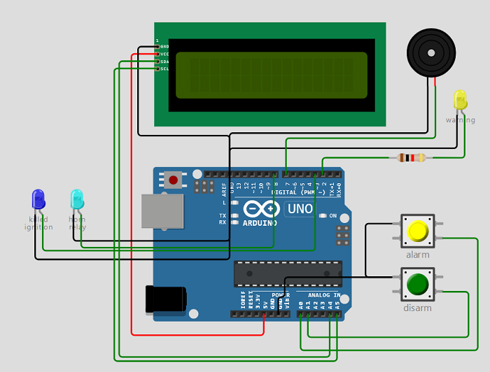 DiscretePin alarmLed(2); // pin DiscretePin horn(8); // pin Buzzer buzzer(7); // pin, frequeny Indicator alarmIndicator(15, 1, 'S'); // col, row, character
