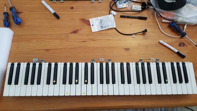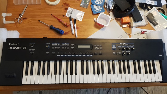 Recently I've bought a Roland JUNO-D with a damaged keybed. The previous owner has tried to clean the rubber contacts but during dismanteling he has ripped of a ribbon cable between the keybed and the mainboard. As there is a video on Youtube with such a repair and even an older forum post wherein one asks for something similar, I would like to share what I have done with that JUNO-D