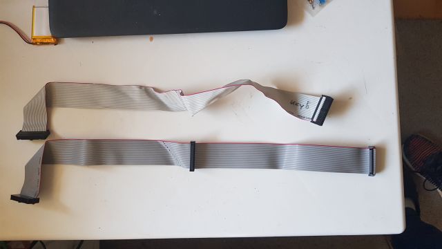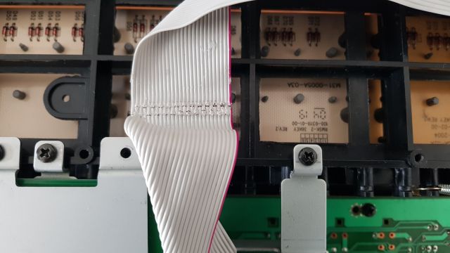 The original OEM ribbon cable has 26pins, pitch 2.54 and is approx. 45cm long. I found a slightly longer ribbon cable with 50cm with two sockets and decided to add a third female connector at the proper space instead of the PCB connector and to solder a IDC male connector for through hole mount on the keybed PCB. This will make later maintenance easier as the ribbon cable can now be disconnected from the keybed PCBs and you are not forced to dismantle the main PCB to disconnect the cable.