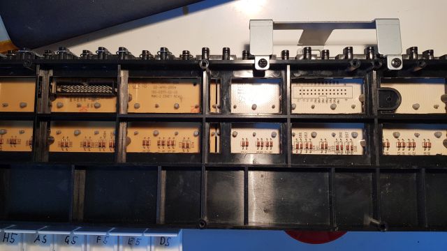 Some rubber contacts had heavy wear. It might be that one has tried to use some kind of graphite to "improve" the keys. I have cleaned the rubbers with soapy water and isopropanol (IPA), cleaned the contacts, but still two octaves where not working properly and I have ordered replacement rubber contacts. Unfortunately the rubbers of that MSK-1 keybed are not cheap (roughly 35 EUR for the two octaves), but at least you can source them within the EU.